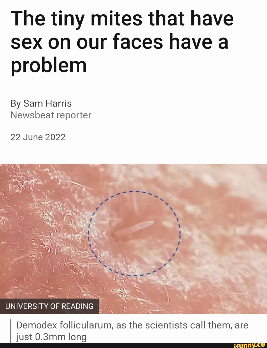 The Tiny Mites That Have Sex On Our Faces Have A Problem By Sam Harris Newsbeat Reporter June 201159
