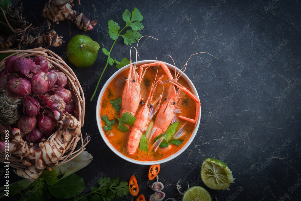 Tom Yum Goong Thai Hot Spicy Soup Shrimp With Lemon Grass Lemon Galangal And Chilli On Top View is a popular picture for sexy and hot.
