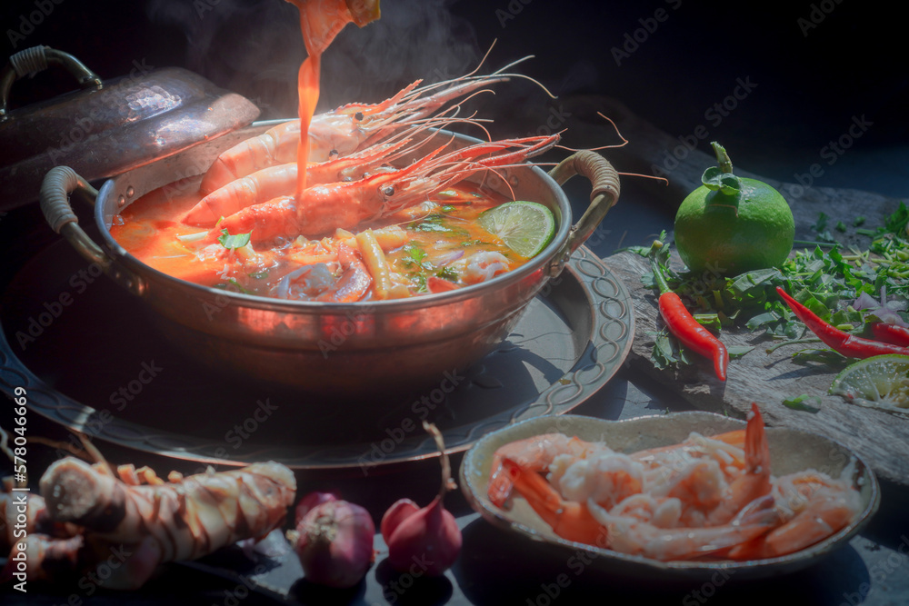 Tom Yum Goong Thai Hot Spicy Soup Shrimp With Lemon Grass Lemon Galangal And Chilli On Top View is a popular picture for sexy and hot.