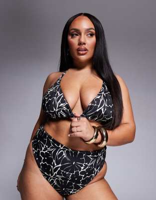 Top De Bikini Monocrom Tico Triangular De Copas Altas Con Estampado Floral Y Cuello Halter De is a popular picture for sexy and hot.