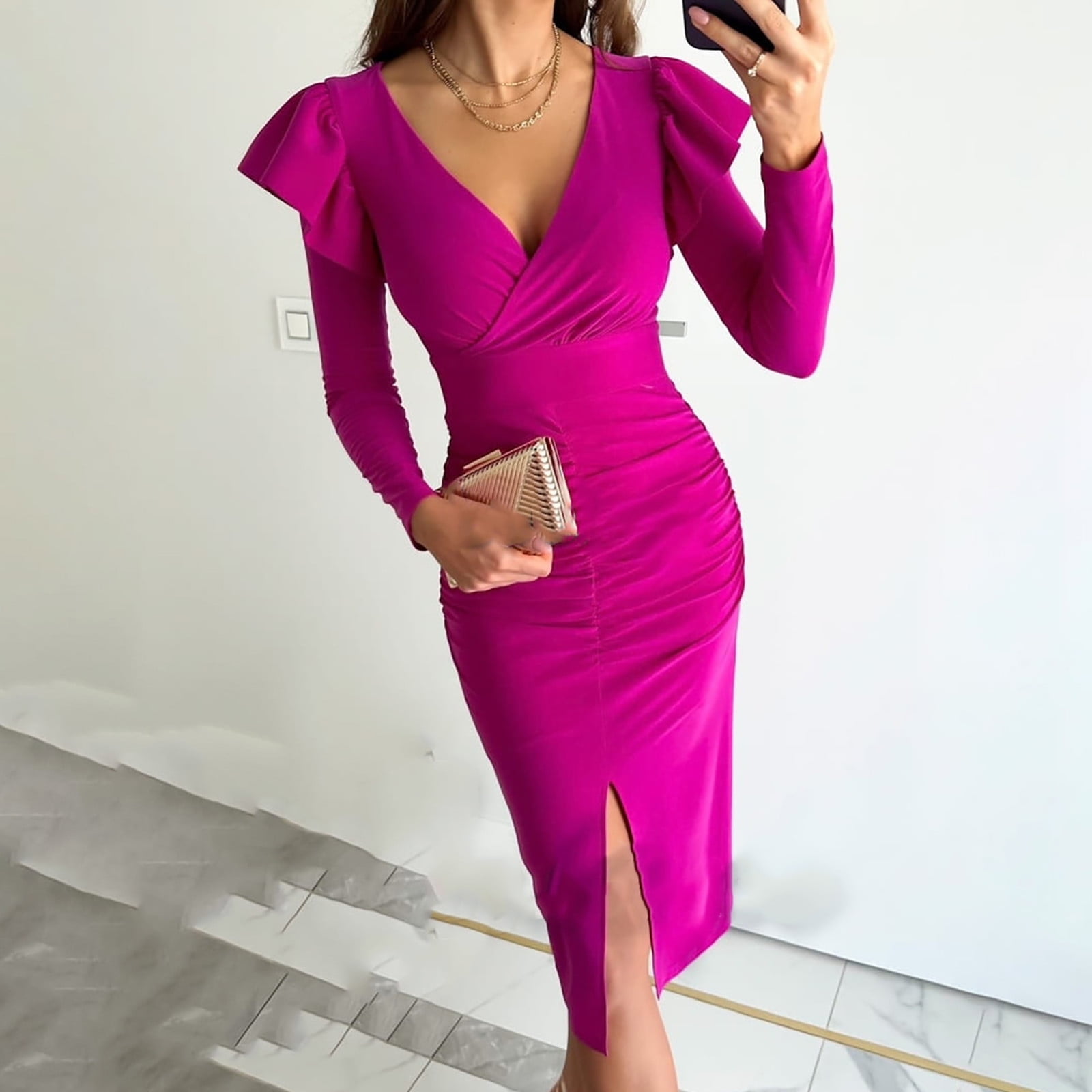 Tponi Bridesmaid Dresses Evening Gown Regular V Neck Tab Set In Sleeve Hot Pink Plus Size is a popular picture for sexy and hot.