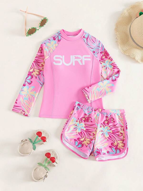 Tag : Traje De Ba O De Bikini Para Ni As Preadolescentes Con Estampado Tropical De Cuello Alto Y