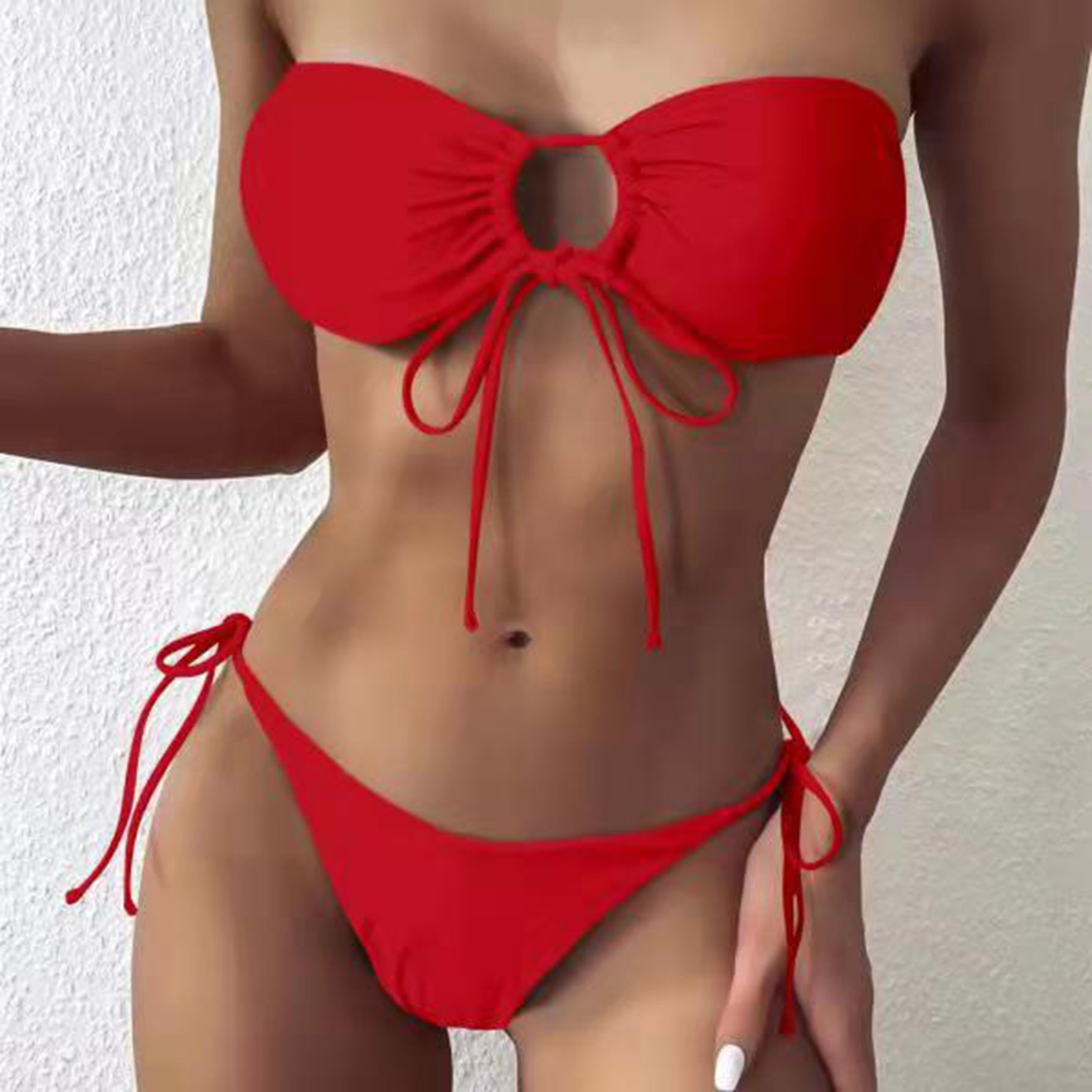 Travelwant Women Halter Circle Ring Bikini Set Bandage Push Up Bra Briefs Swimsuit Swimwear is a popular picture for sexy and hot.