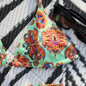 Tag : Triangle Bikini Set Boho Swimsuit Striped Bikini Set Green Triangle Bikini Boho Green Bikini