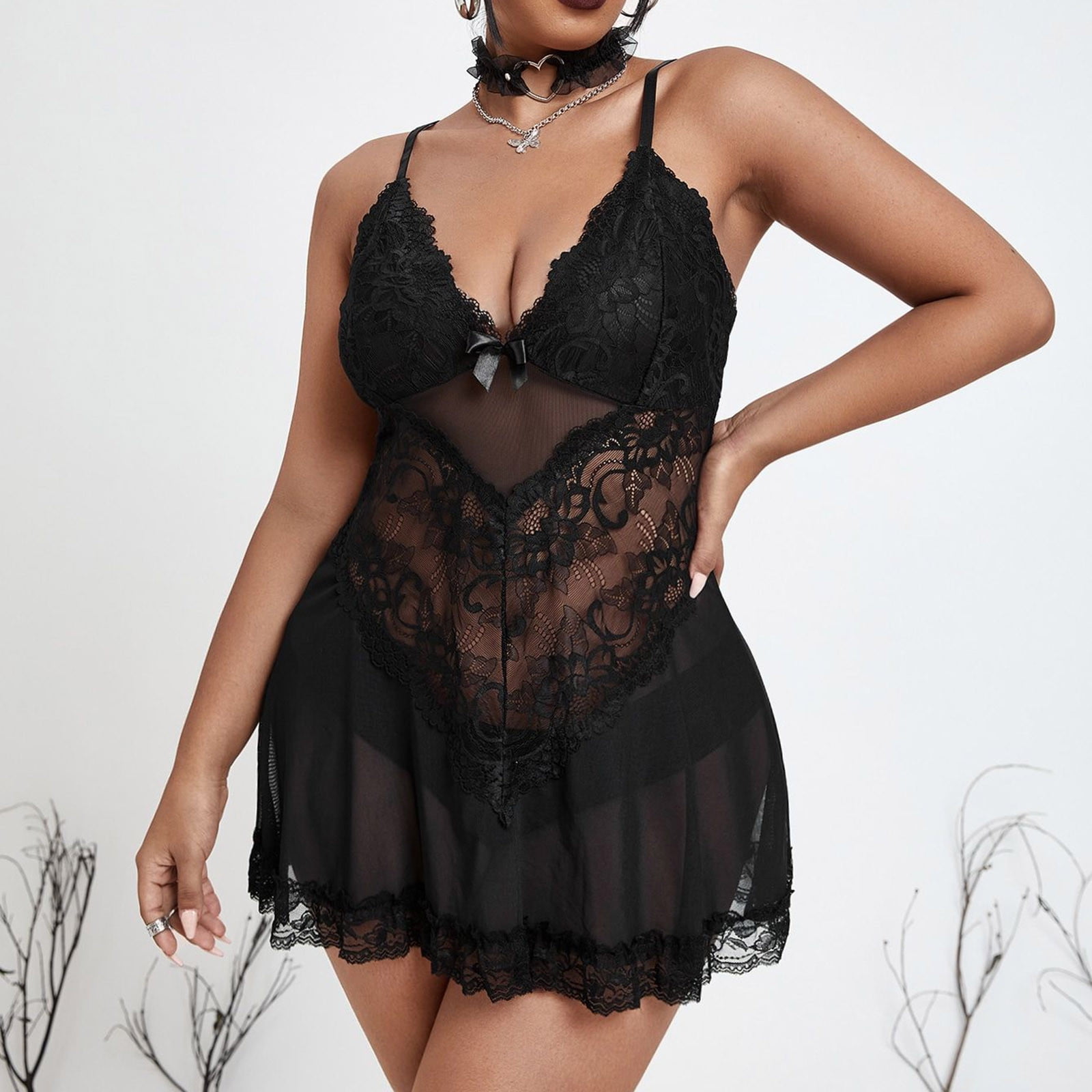 Tuwabeii Womens Plus Size Slip Dress Lingerie V Neck Waist Retraction Splicing Pajama Skirts Add is a popular picture for sexy and hot.