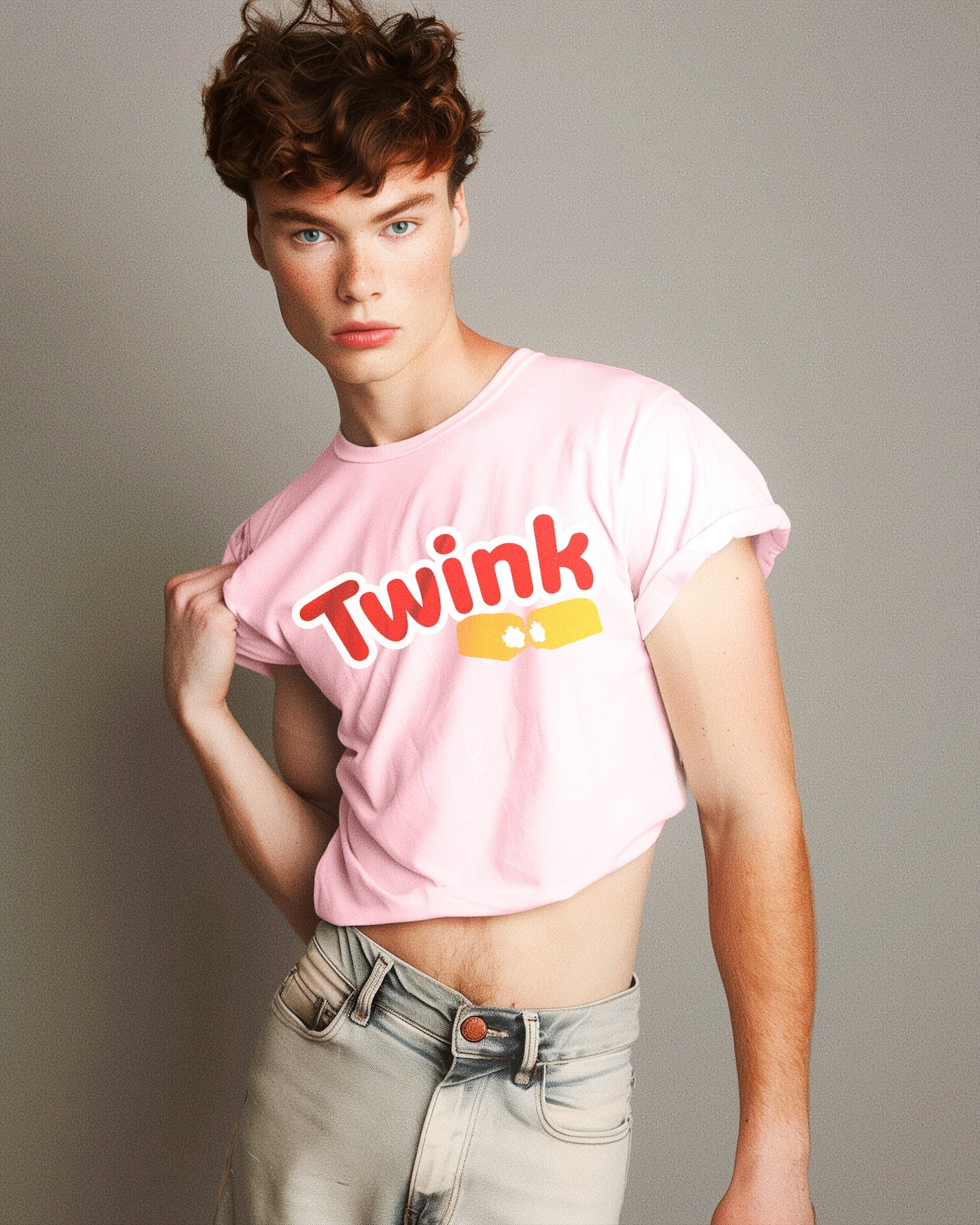 Tag : Twink Logo Parody T Shirt Lgbtq Pride Apparel In Bright Pink Blue From Kip Noll By Vintage Gay