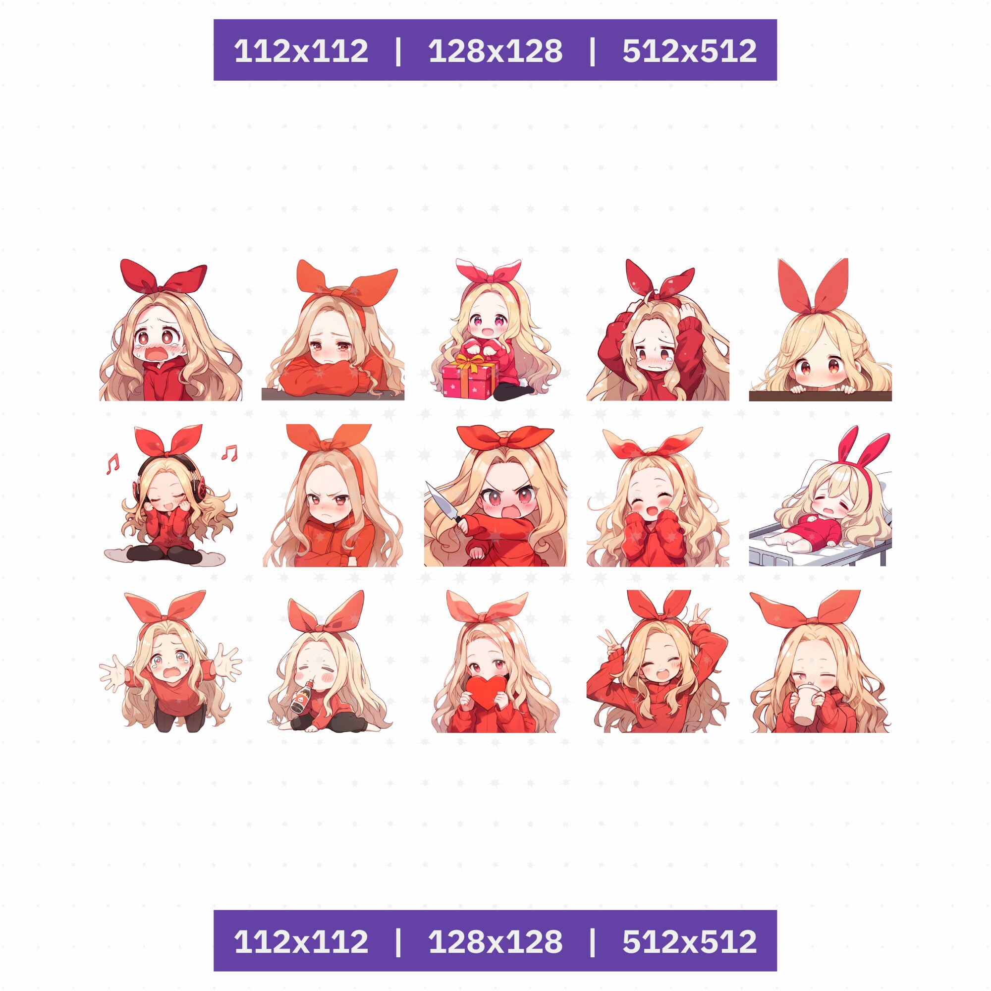 Tag : Twitch Emotes Girl Blonde Hair And A Red Bunny Bow Emote Set Bundle Twitch Discord