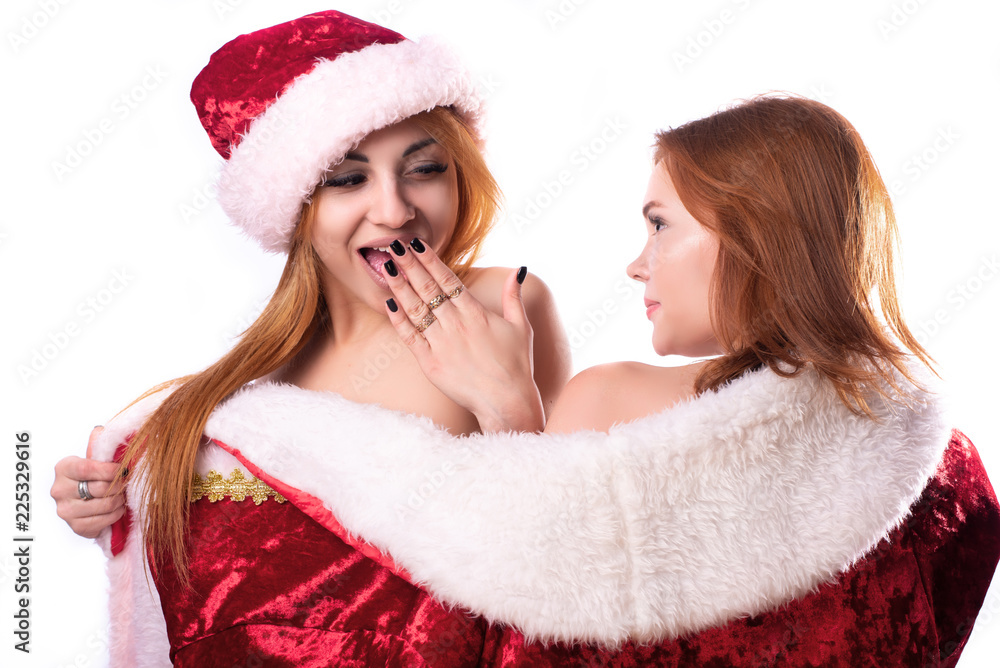 Two Beautiful Naked Girls With Red Hair Are Covered With Santa S Costume Stock Photo Adobe Stock