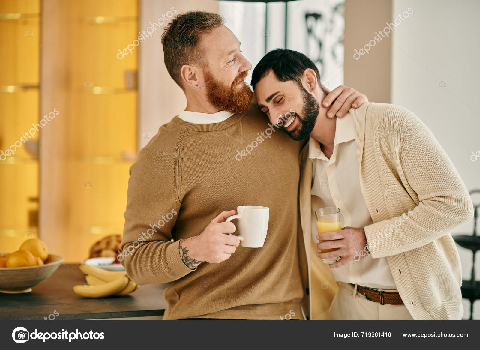 Tag : Two Men Happy Gay Couple Hug Affectionately While Savoring Coffee Stock Photo Haydmitriy