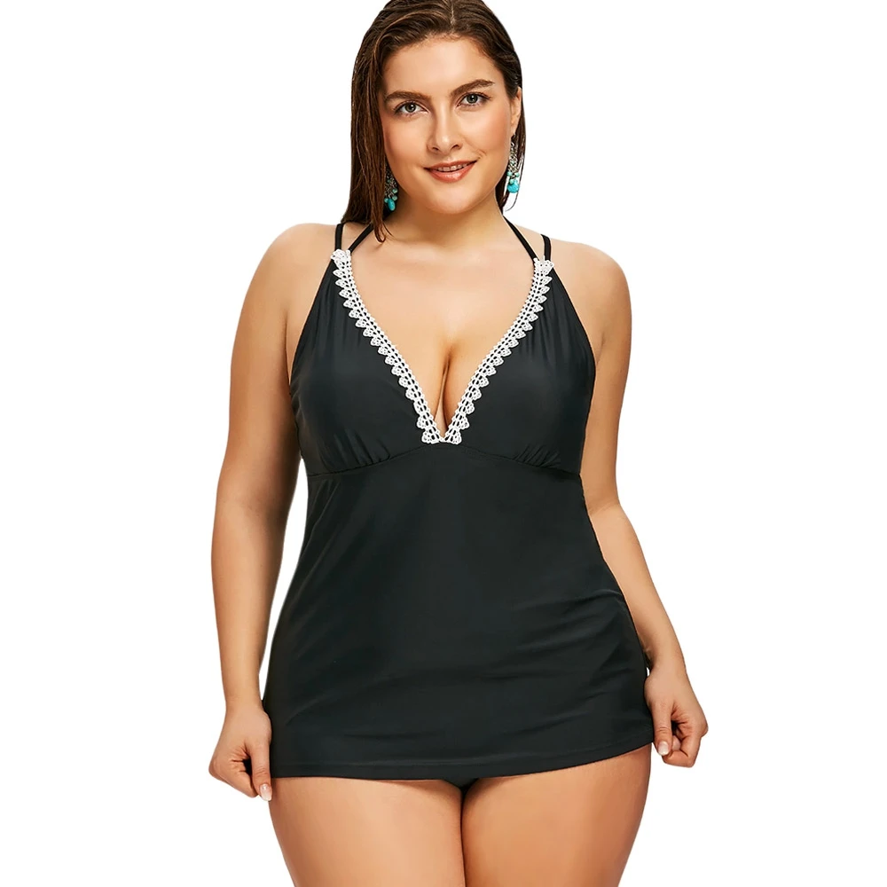 Two Piece Bikini Set Lace Panel Back Criss Cross Tankini Swimsuit Black Plus Size Bathing pictures has 500 x 400 · 50 kB · jpeg.