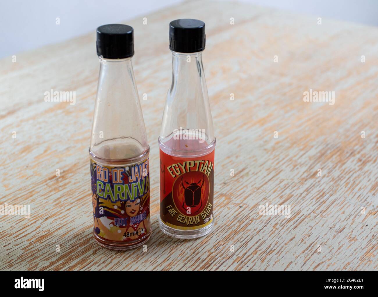 Tag : Two Small Bottles That Had Contained Hot Sauce Stock Photo Alamy