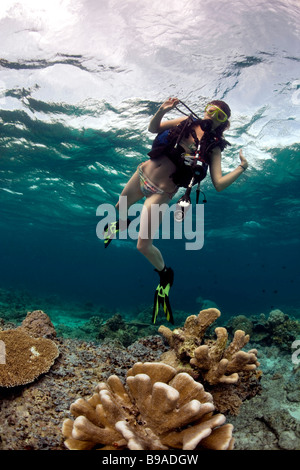 Tag : Une Plong E Sous Bikini Girl In A Bikini Pose Au Dessus De La Barri Re De Corail Dans Les Eaux