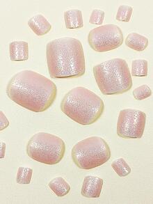 Tag : Upgrade Your Look With Pcs Short Square Nude Glittered Timeless Full Cover Fake Toenail Kit