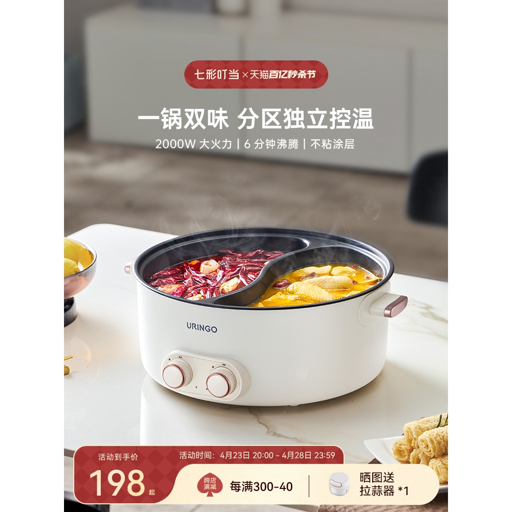 Tag : Uringo Electric Hot Pot Double Flavor Cooker Separate Temperature Control Non Stick Coating L