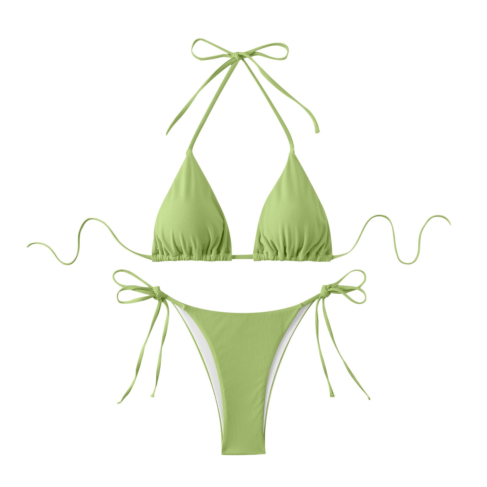 Utsjkr Deals Womens Triangle Bikini Set Sexy Halter Strappy Top Thong Cheeky Bikini Swimsuits is a popular picture for sexy and hot.
