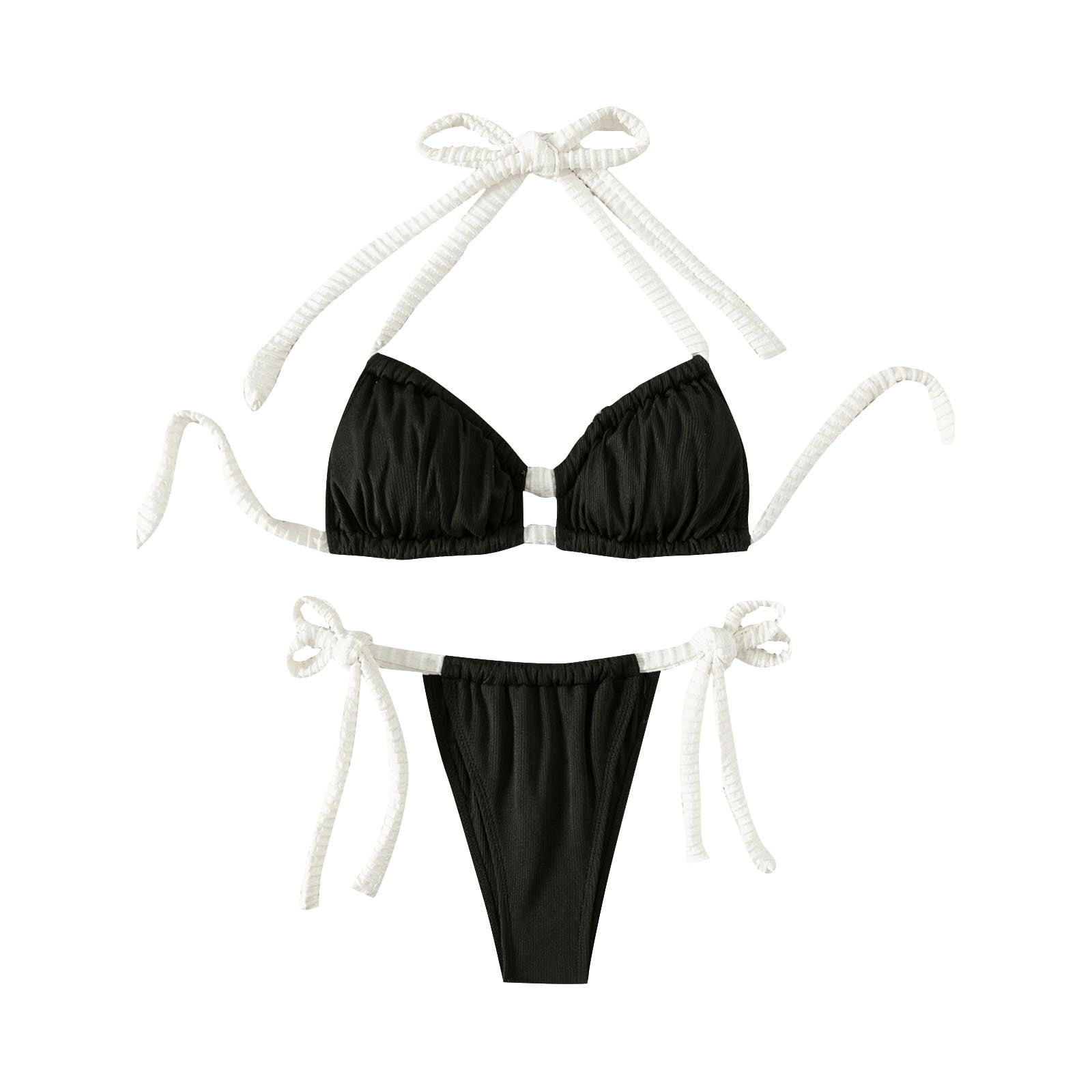 Utsjkr Piece Bikini Sets For Women Sexy Ribbed String Halter Ruched Color Block Swimsuit is a popular picture for sexy and hot.