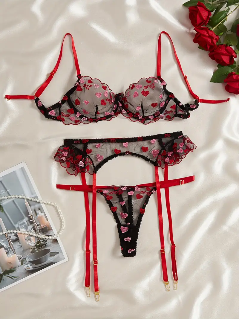 Tag : Valentine S Day Heart Embroidery Lingerie Set Semi Sheer Intimates Bra Thong Elizabethmediaa