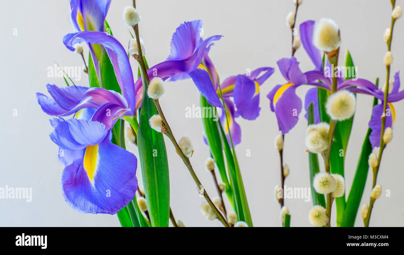 Tag : Vase Of Iris Flowers And Pussy Willow Stems Stock Photo Alamy