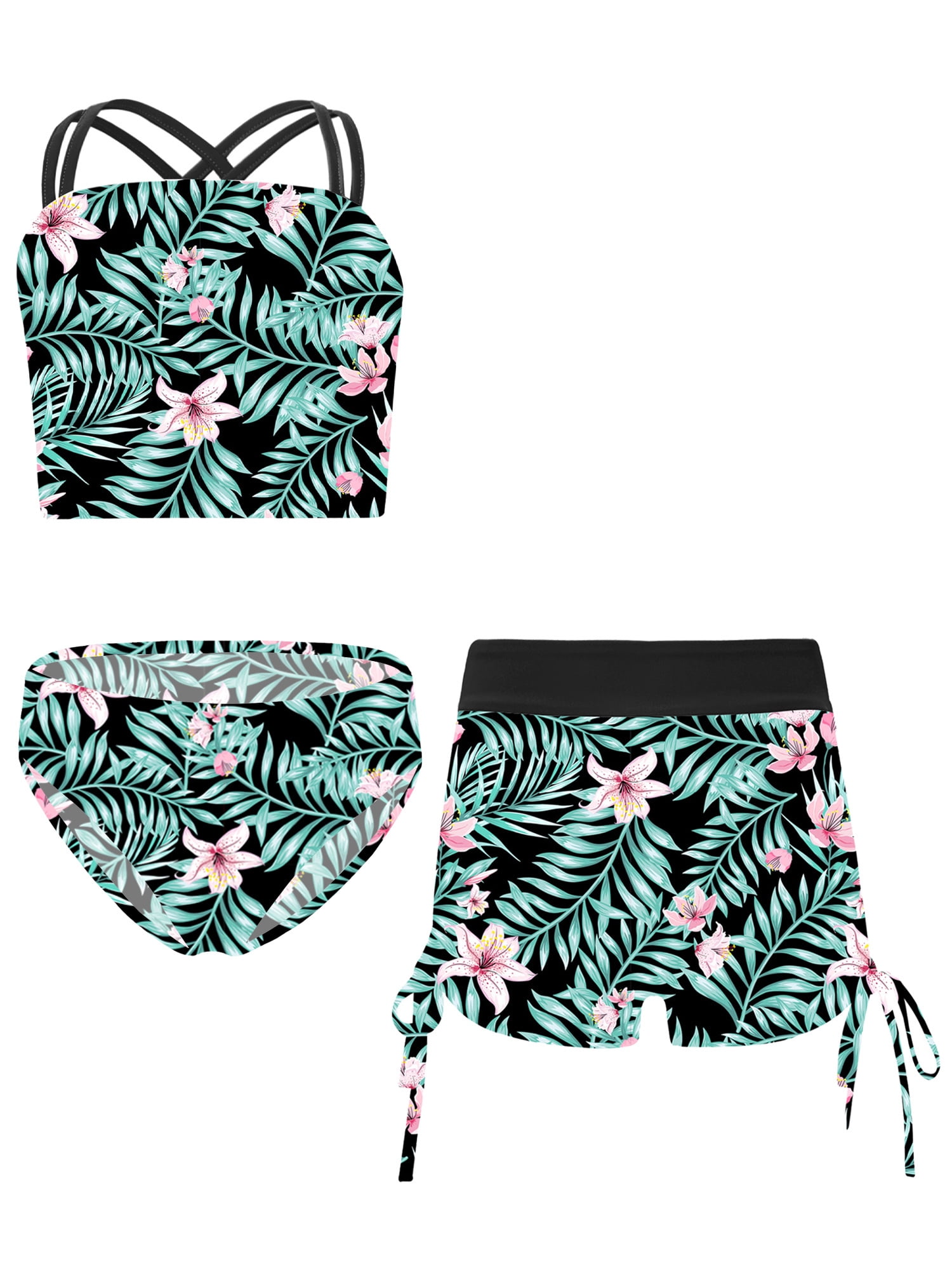 Tag : Vastwit Girls Piece Swimsuit Bikini Set Criss Cross Tankini Crop Top With Shorts Rash Guard