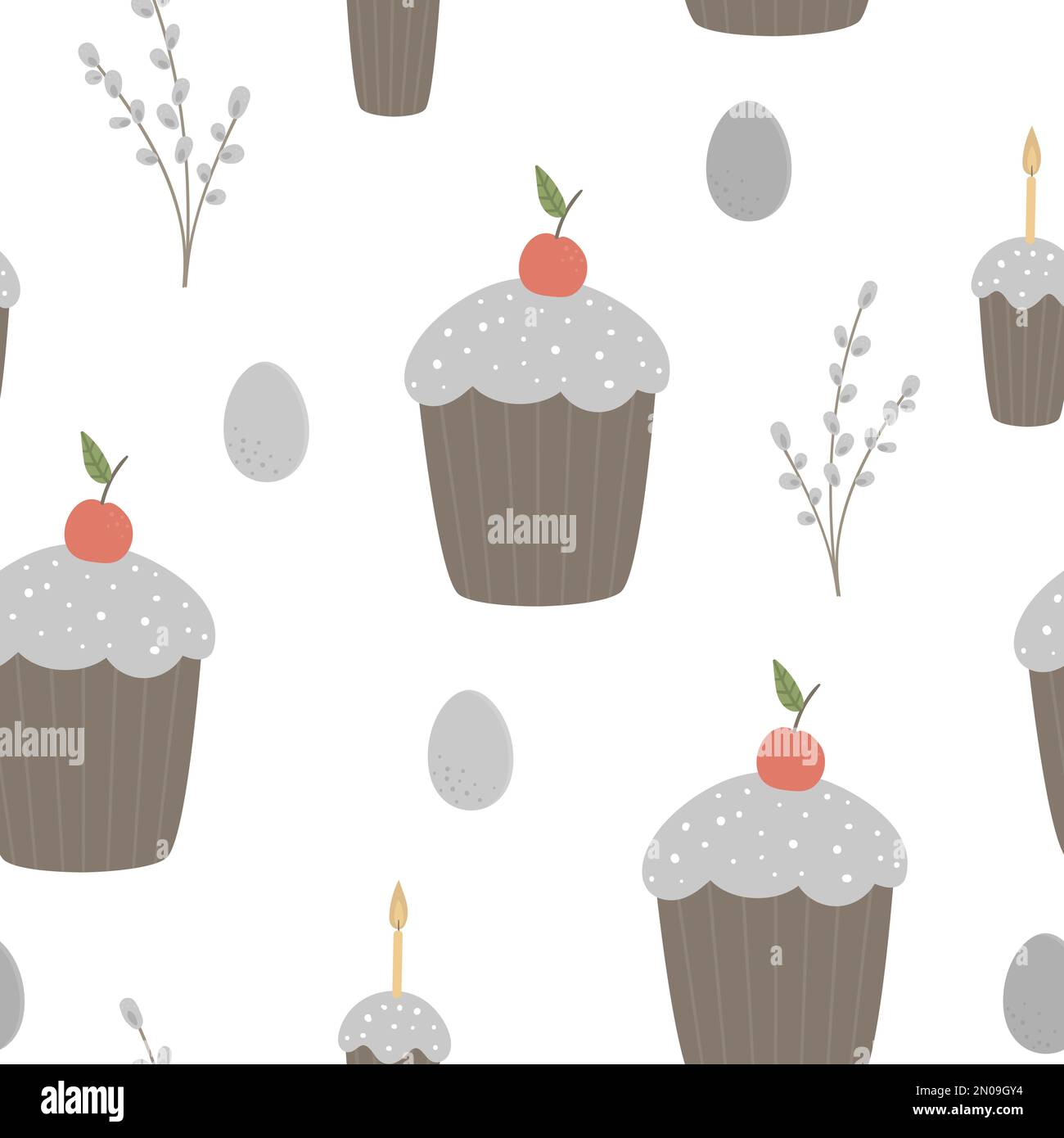 Tag : Vector Seamless Pattern With Easter Cakes Candle And Pussy Willow Isolated On White Background