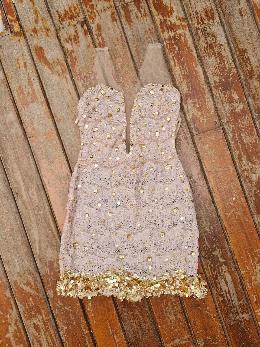 Vestido Curto Rendado Pedraria Nude E Dourado Festa Vestido Feminino Usado Enjoei is a popular picture for sexy and hot.