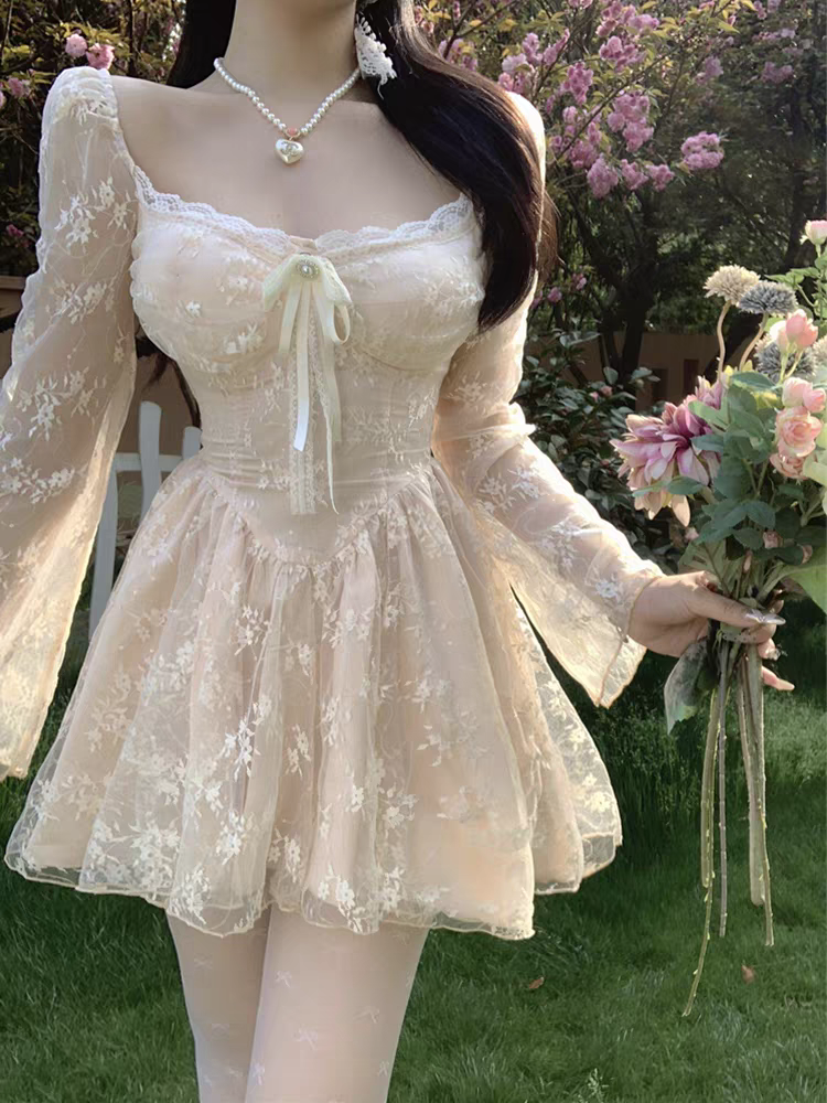 Vestido De Encaje Color Nude Xydung Store 13735