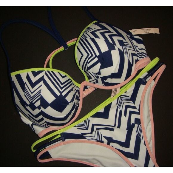 Tag : Victoria S Secret Swim Victorias Secret Dd C Bikini M Strappy White Navy Ink Blot Green