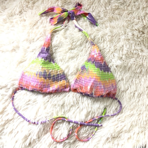 Tag : Victoria S Secret Swim Victorias Secret Sequin Tie Dye Rainbow Stripe String Bikini Top