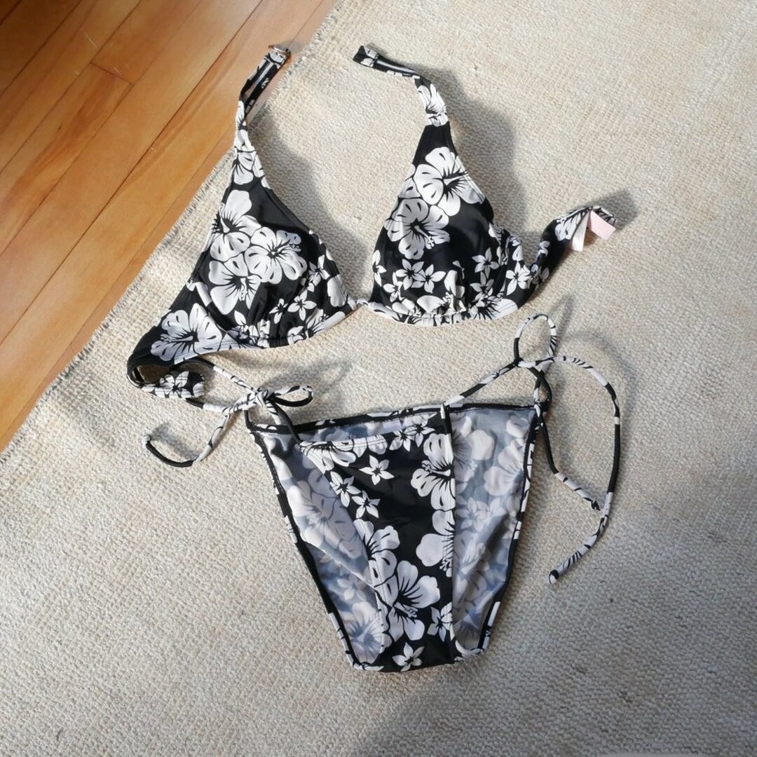 Victorias Secret Vintage Early S Bikini Tie Side Halter Top B S Black Etsy is a popular picture for sexy and hot.