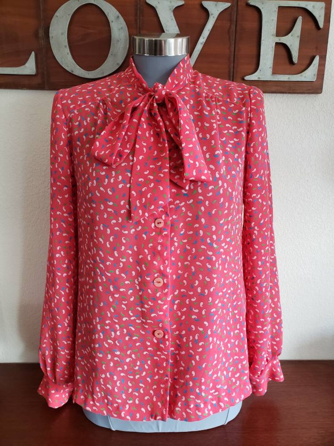Tag : Vintage Blouse With Pussy Bow Secretary Blouse Rockabilly Style Pin Up Blouse Paisley Print