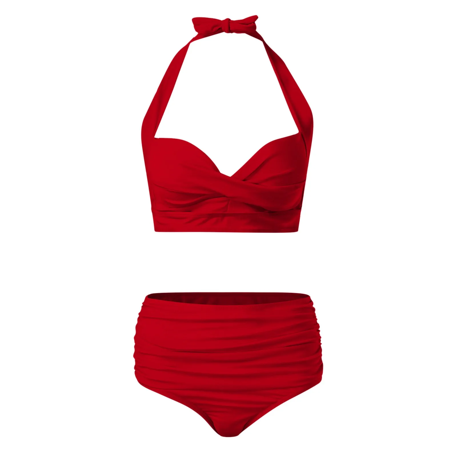 Tag : Vintage High Waisted Brief Two Piece Bikini Set Ruched Swim Suit Women Push Up Y K Swimwear