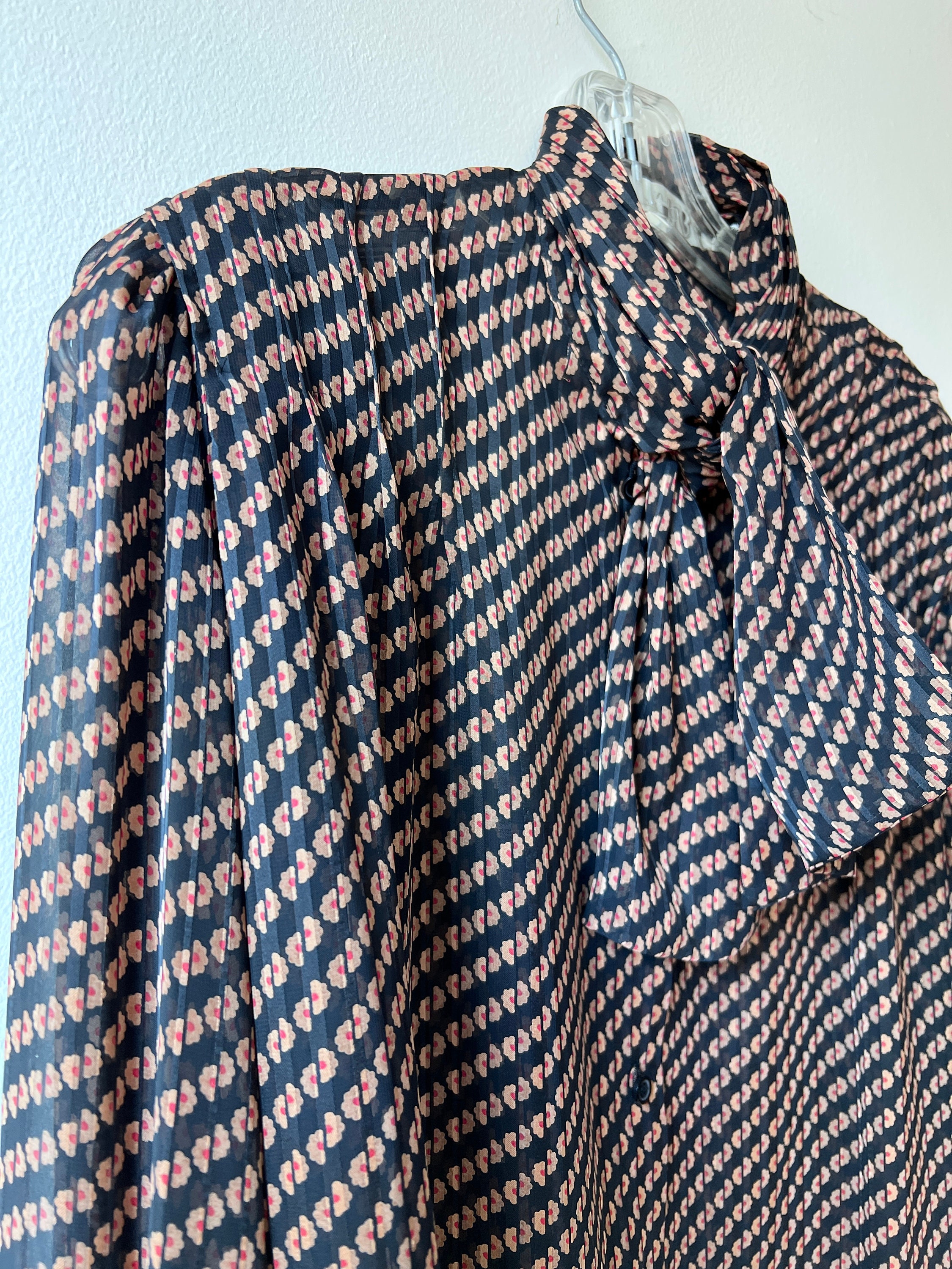 Tag : Vintage S Floral Pussy Bow Blouse Size Small She Gem