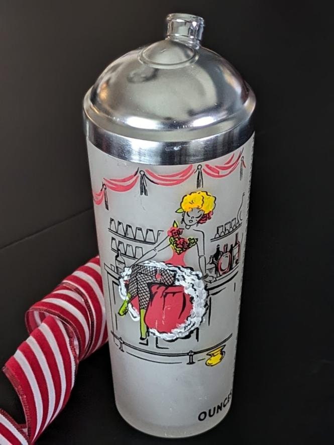 Vintage S Gay Fad Frosted Glass Can Can Cocktail Shaker Saloon W Barber Quartet Saloon Can