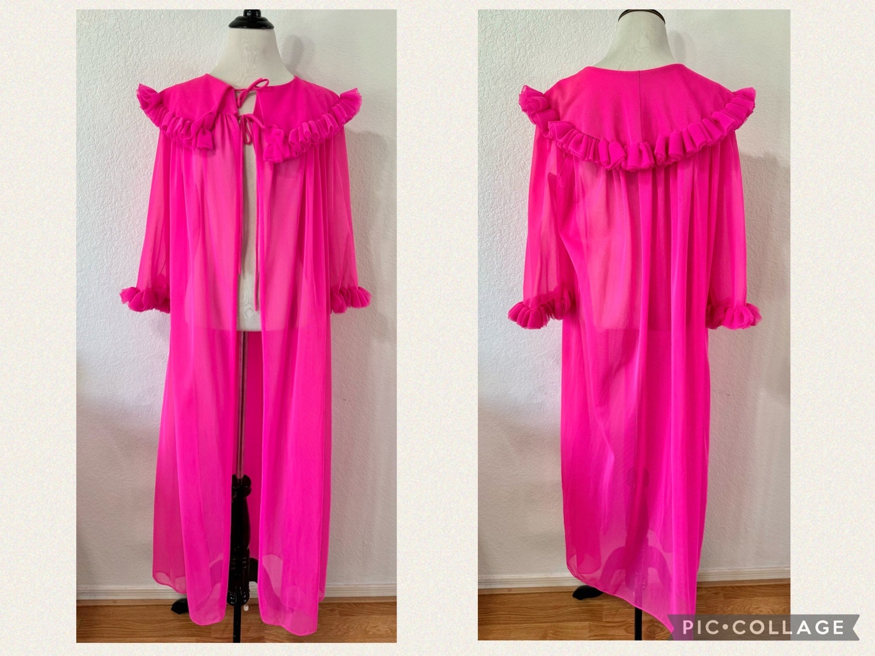 Vintage Union Made Hot Pink Chiffon Sheer Robe Peignoir Ruffles S Retro Style Sleepwear pictures has 500 x 400 · 50 kB · jpeg.