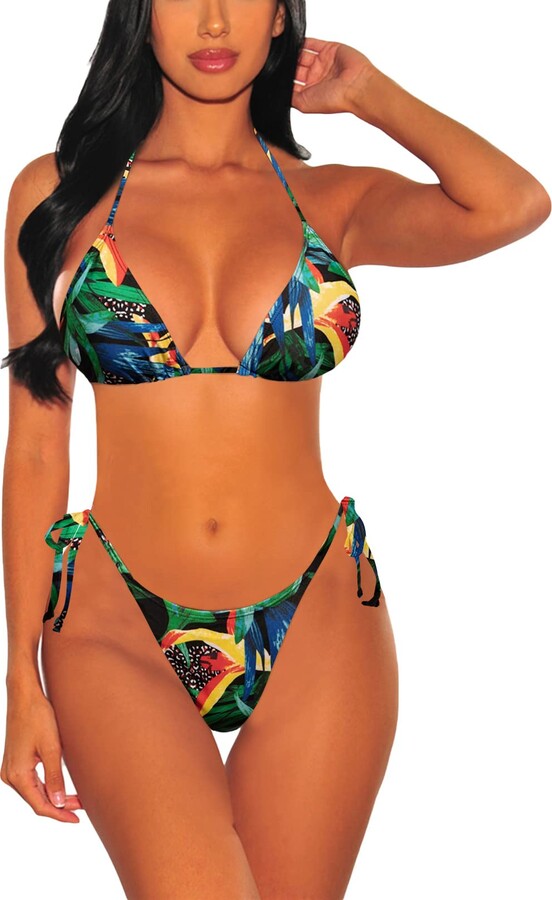 Tag : Viottiset Womens Halter Drawstring Strap Bikini Set Removable Padded Sexy Triangle Swimsuit