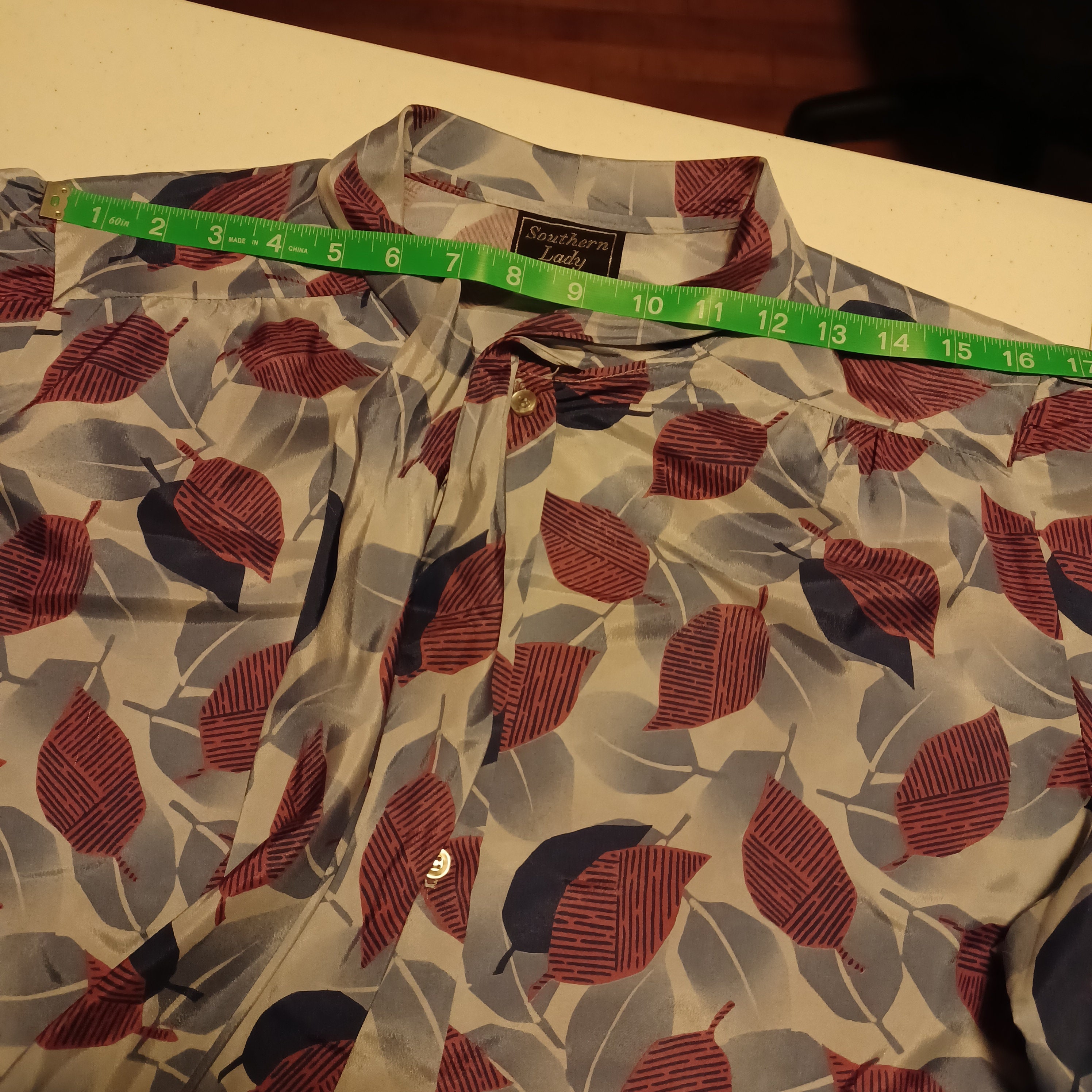 Related pictures for Volup Vintage S Pussy Bow Secretary Blouse Leaf Pattern L Xl Vintage S Professional Office