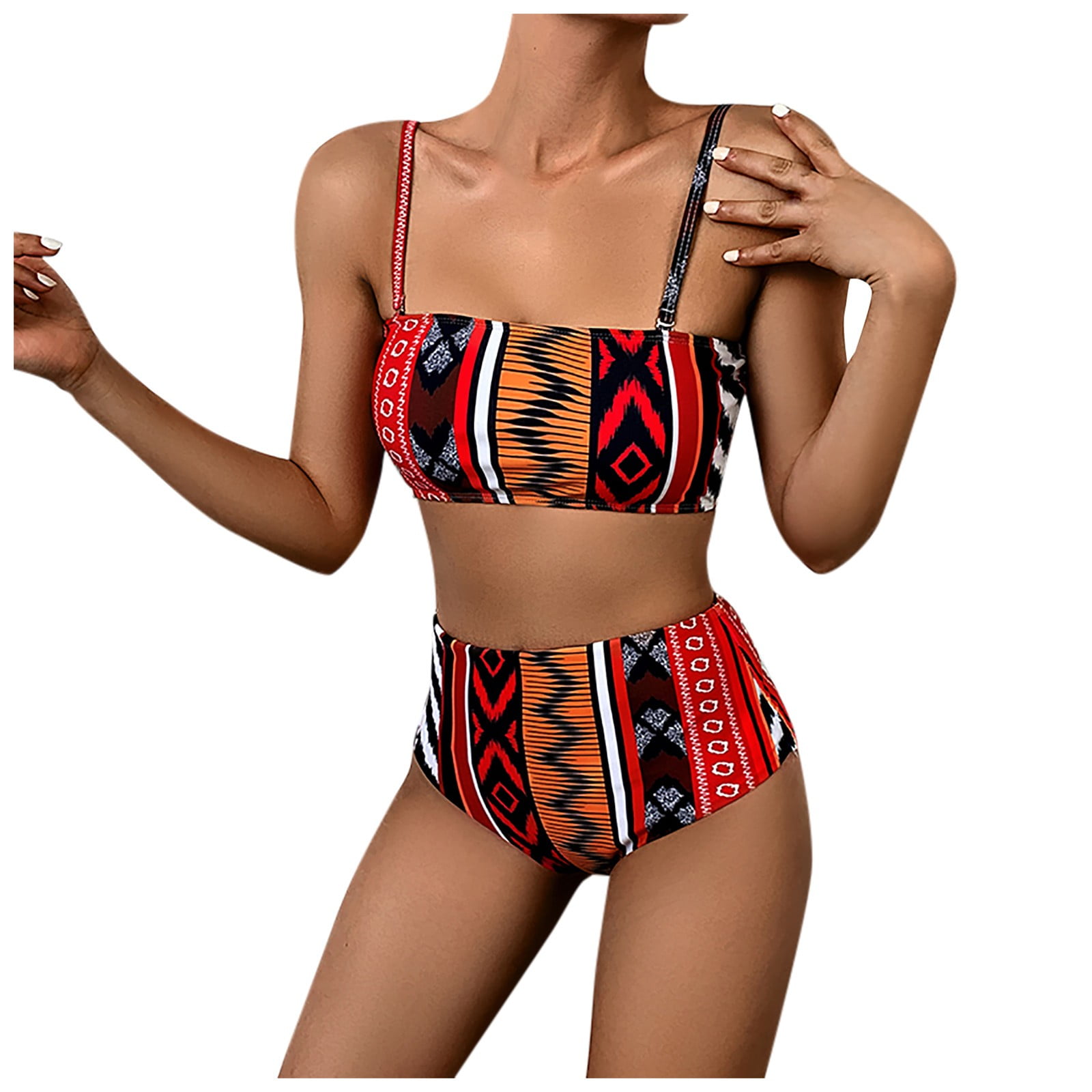 Vsssj Swimsuits For Women Ethnic Style Two Piece Bikini Set High Waisted Swimwear Retro Print is a popular picture for sexy and hot.