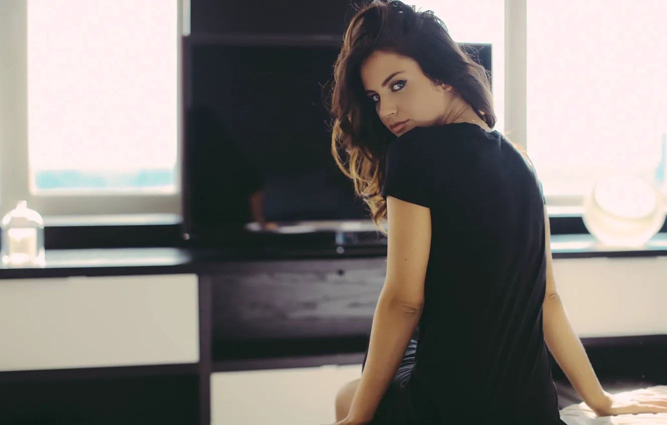 Wallpaper Girl Pose Sweetheart Model Brunette T Shirt Sexy Sitting For Mobile And Desktop