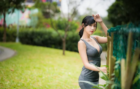 Wallpaper Sexy Pose Dress Brunette Neckline Asian Bokeh For Mobile And Desktop Section