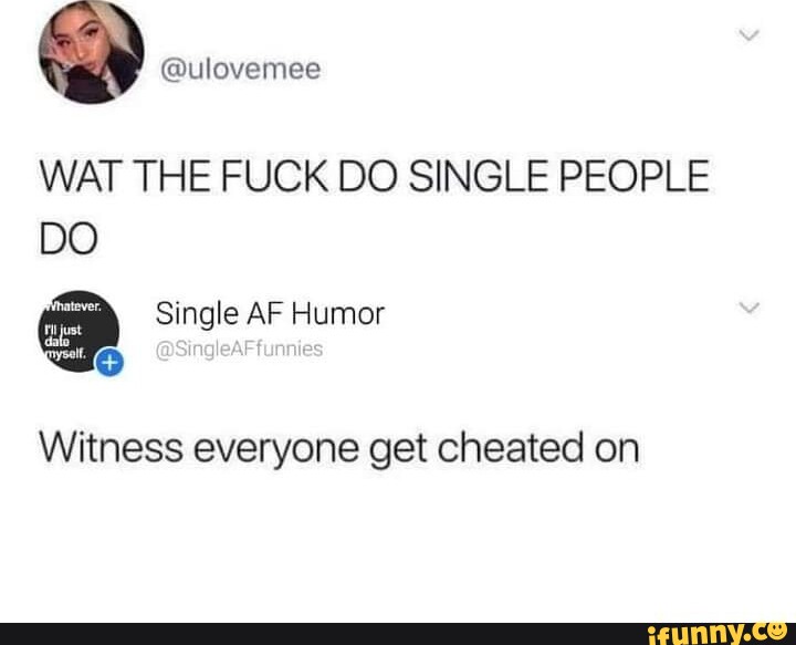 Tag : Wat The Fuck Do Single People Do Single Af Humor Dj Witness Everyone Get Cheated On Ifunny