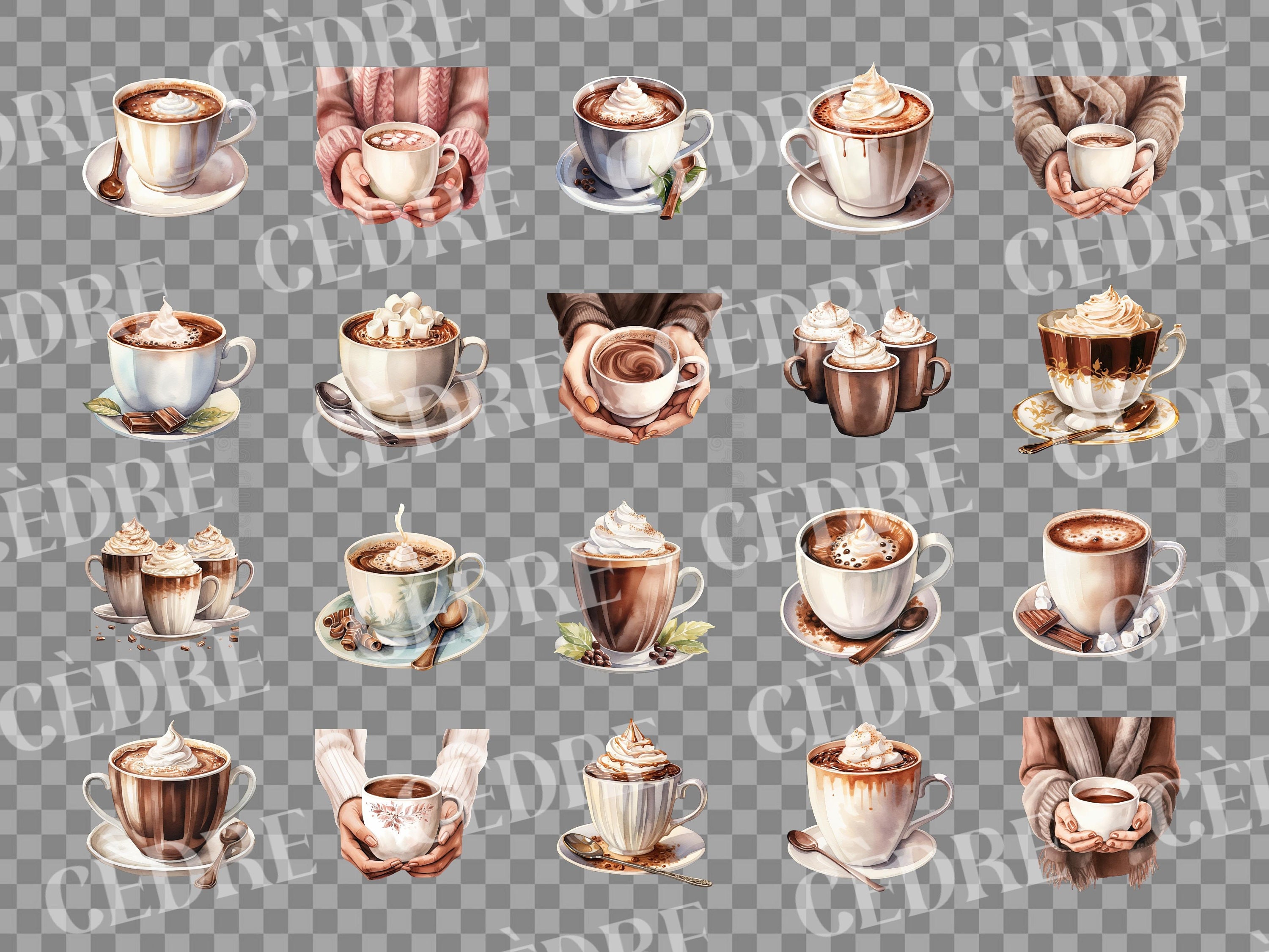 Tag : Watercolor Hot Cocoa Clipart Hot Chocolate Clipart Cup Of Etsy