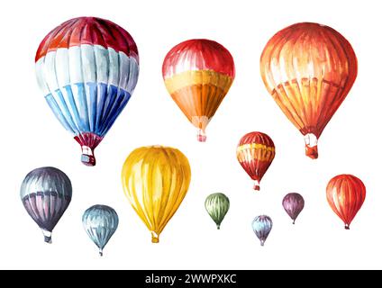 Watercolor Set With Hot Air Balloons And Garland Hand Painted Sky Illustration With Aerostate is a popular picture for sexy and hot.