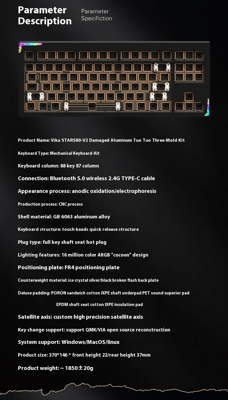 Weikav Stars V Wireless Aluminium Mechanical Keyboard Kit Hot Swap Rgb Custom Barebone Qmk 199080