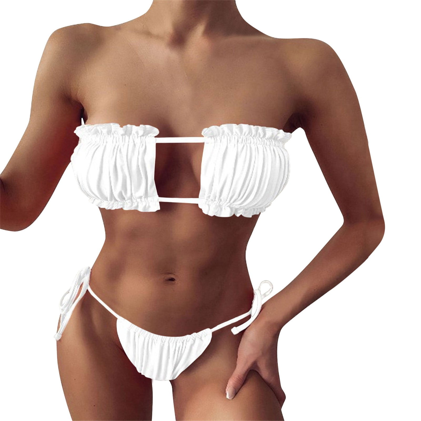 Weloijevbe Micro Thongs Bikini Set For Women Tiny Low Rise Tie Side Cheeky Bottoms Ruffle is a popular picture for sexy and hot.
