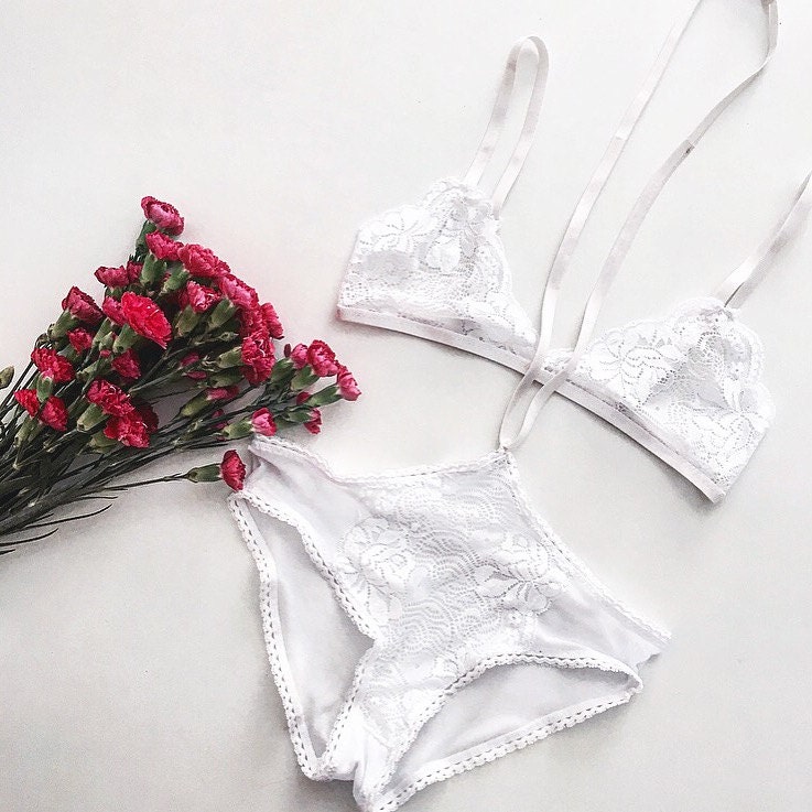 White Lace Lingerie Set Soft Bra And Panties Handmade Etsy is a popular picture for sexy and hot.