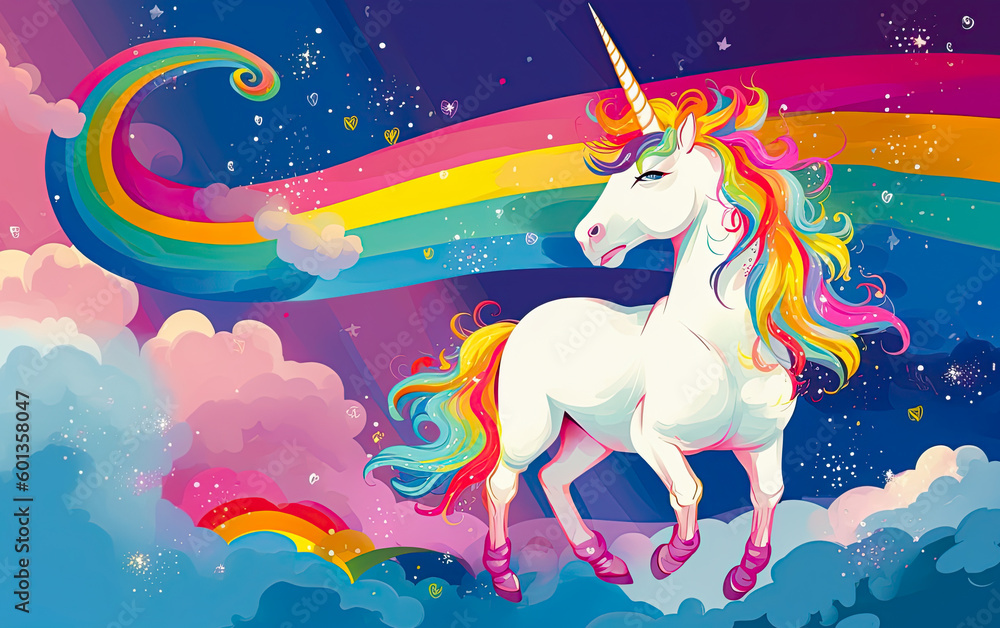 Tag : White Unicorn Symbol Of Lgbt Gay Community In Rainbow Flag Colors Ai Generative Illustration