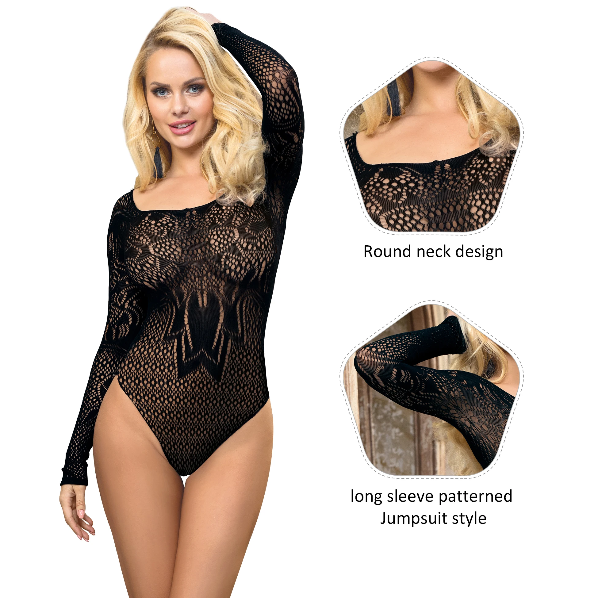 Wholesale Mesh Fishnet Bodystocking Black Lingerie Bodysuits For Mature Women Long Sleeve Plus is a popular picture for sexy and hot.