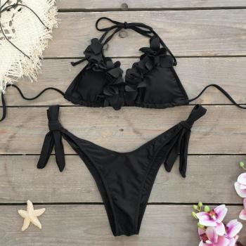 Wholesale Sexy D Petal Decor Padded Halter Neck Self Tie Triangle Bikini Set Ba is a popular picture for sexy and hot.