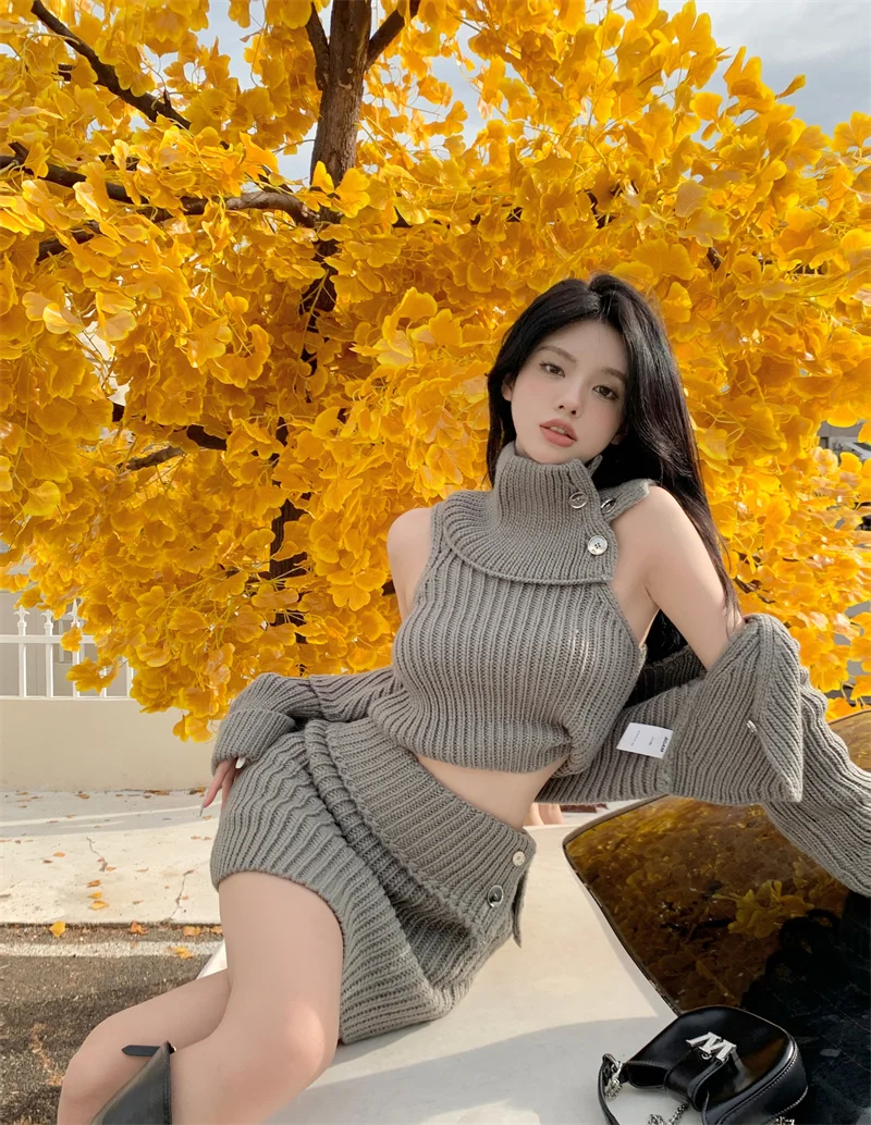 Winter Hot Girl Suit Design Sense Thick Needle Turtleneck Tank Top Sweater Cardigan Soft Warm is a popular picture for sexy and hot.