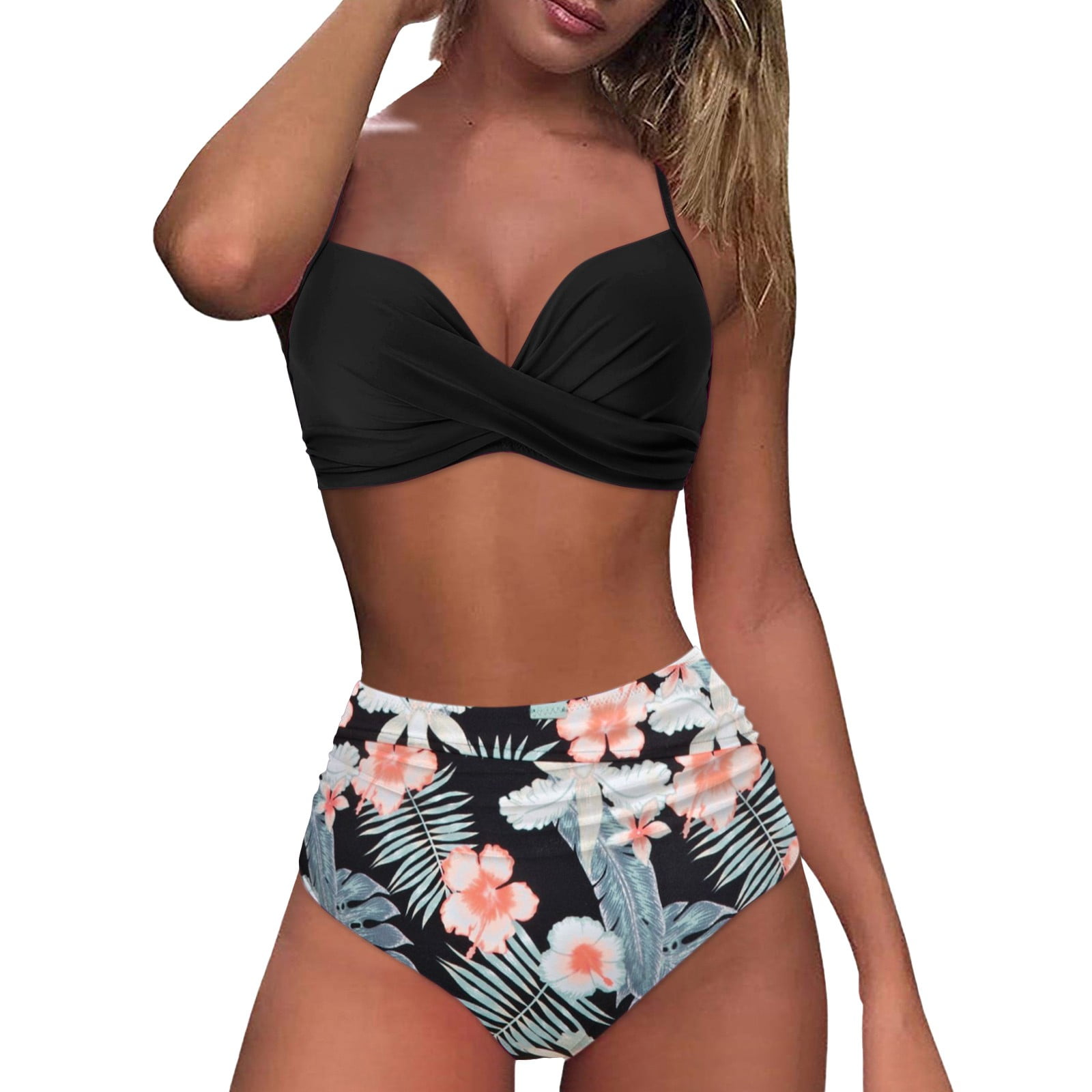 Wiueurtly Bikini Sets For Women High Waisted Push Up Two Piece Vintage Swimsuit Retro Halter 86664